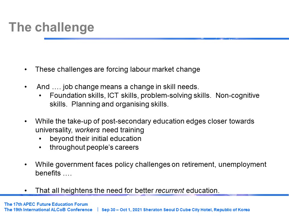 This is a presentation given to the 17th APEC Future Education Forum, held in Seoul, South Korea 30 September 2021 to 1 October 2021