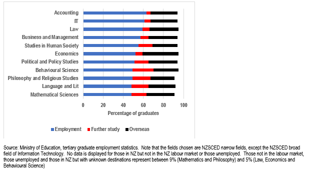 - The employment outcomes of NZ university graduates happen to be good, in all fields, humanities included[7].