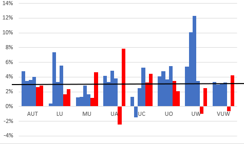[1] It’s not clear how a 20% surplus would be treated in NZ nowadays. Those with long memories will recall a polytechnic making a similarly large surplus one year, leading the government to make significant changes in the funding rules – the offending institution was soon back in the red!